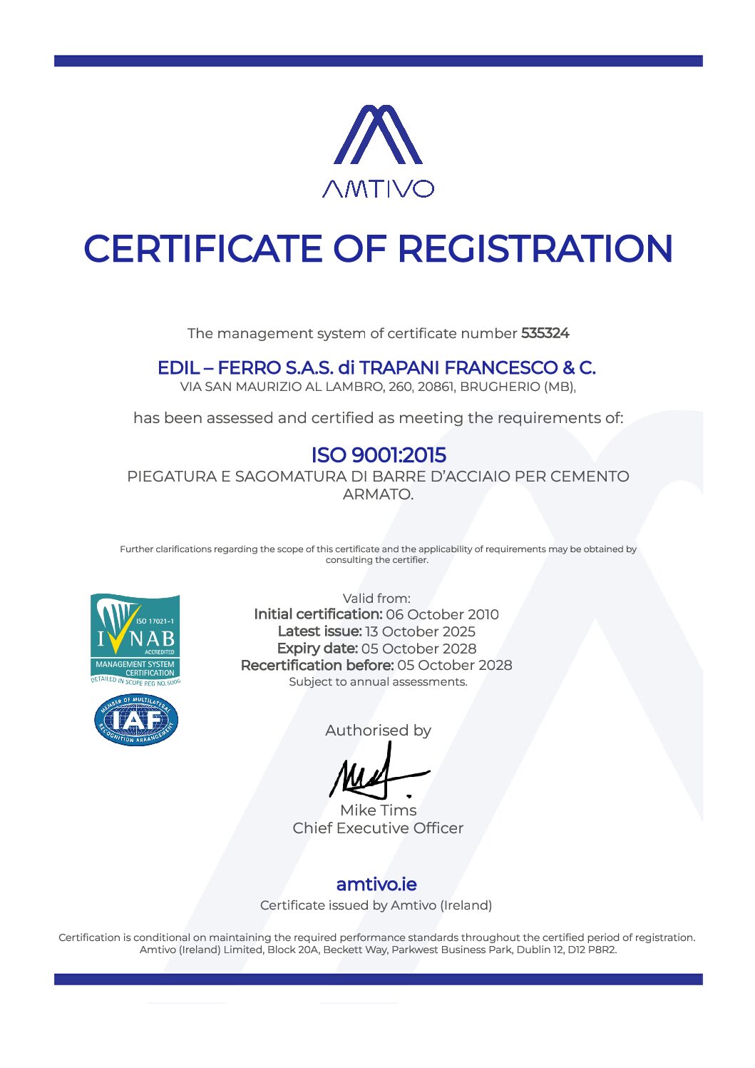 La nostra ditta opera nel campo della produzione e fornitura di strutture in ferro e acciaio idonee per l’edilizia da oltre 40 anni: qualità e innovazione sono punti salienti che ci hanno consentito nel tempo di migliorare prodotti e servizi, e soprattutto di essere sempre la scelta vincente per i clienti che si affidano alle nostre competenze. Per poter mettere nero su bianco questa nostra dedizione riguardo il lavoro e la soddisfazione delle esigenze della clientela, abbiamo negli anni conseguito certificazioni e attestati di qualità.